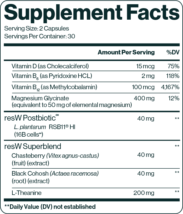 resW is specifically designed for perimenopausal support, the transitional period before menopause, but is also a great supplement for any woman experiencing shifts in energy, mood, and hormones. Many women continue using it post-menopause for ongoing support*